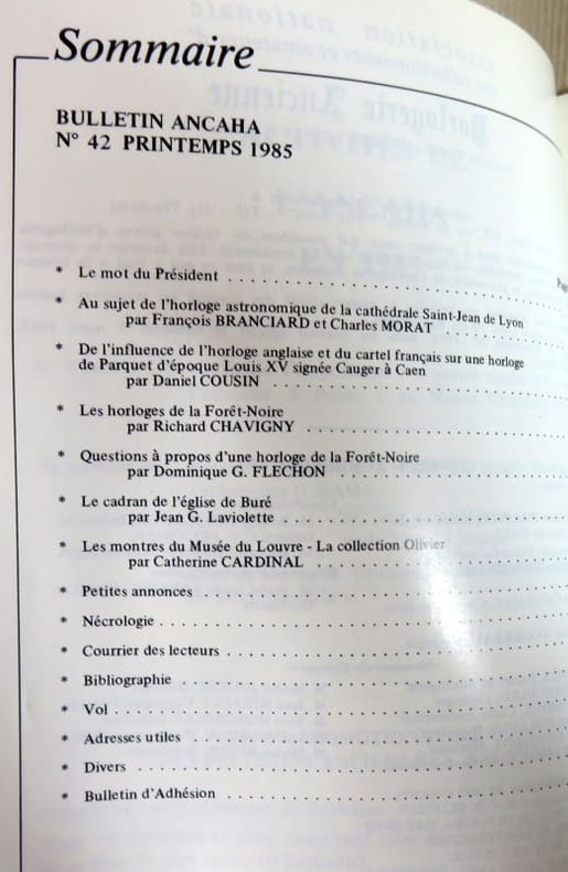 Broché, 23X16 cm, 1985, N° 42, 80 pages, illustrations en noir, revue de l'association nationale des collectionneurs et amateurs d'horlogerie ancienne et d'art. Bon exemplaire.