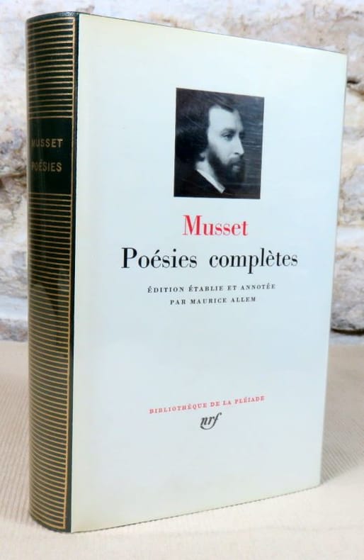 Gallimard NRF "Bibliothèque De La Pléiade", 1980. 1 volume in-12 relié (17,5 x 11 cm), reliure éditeur plein cuir vert, dos lisse orné de filets dorés, jaquette blanche imprimée, rhodoïd, étui de carton gris de l'éditeur, 976 pages -Édition de Maurice Allem. Ce volume contient : Premières poésies - Poésies nouvelles - Poésies complémentaires - Fragments de poésies inachevées - Poésies attribuées à Musset.. Très bon état.