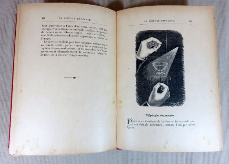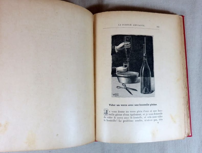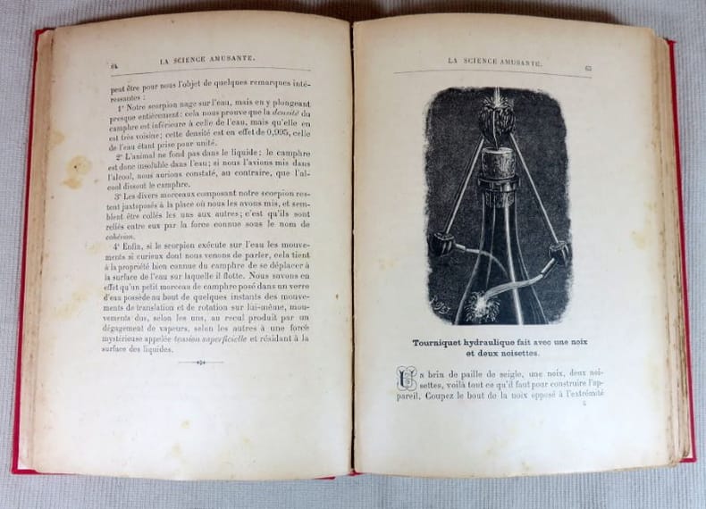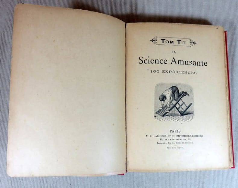 Paris, Larousse, vers 1880 ; in-8, 246-256-256 pp., reliure pleine percaline rouge d'éditeur, dos lisse orné, plat imprimé, tranches dorées. Les 3 volumes. Arthur Good (1853 - 1928), ingénieur français des Arts et manufactures, a écrit, à la fin du XIXème siècle, sous le pseudonyme de Tom Tit des articles hebdomadaires dans L'Illustration sous le titre « La Science amusante ». Cet ouvrage reprend la publication de l'Illustration et l'enrichit très largement.