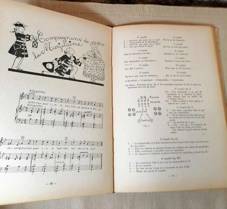 1938 bradel éd. in-8 jésus, 1er pl. ill. d. toil. rouge, partitions et fig. (et dess. de jacqueline duché) pour expliquer les pas de danse, 143 p., 1938 nathan éd.,