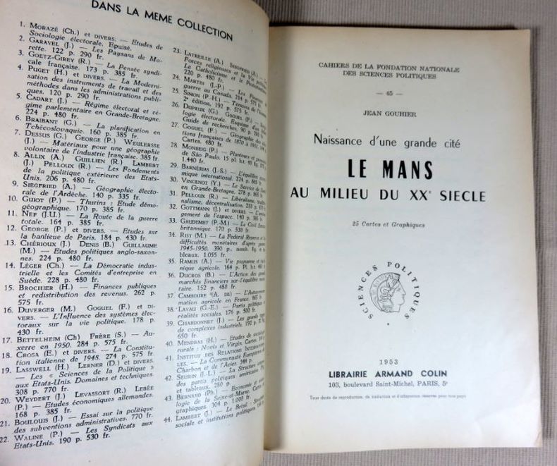 Broché, 24X16 cm, 183 pages, 25 cartes et graphiques en noir, 1953, cahiers de la fondatiion nationale des sciences politiques, librairie Armand Colin. Bon exemplaire.