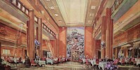 Ce paquebot britannique fut inauguré le 26 septembre 1934.Illustré d'un portrait de la Reine Mary en médaillon , 20 planches hors-texte en couleurs dont une double centrale, 3 planches panoramiques rempliées et 7 grandes vignettes contrecollées représentant des oeuvres d'art décorant les Salons ( Vanessa Bell, Bertrand Nicholls, Maurice Lambert, Anna K. Zinkeisen, George Ramon, Davi's Richter, Tom Webster, ...)