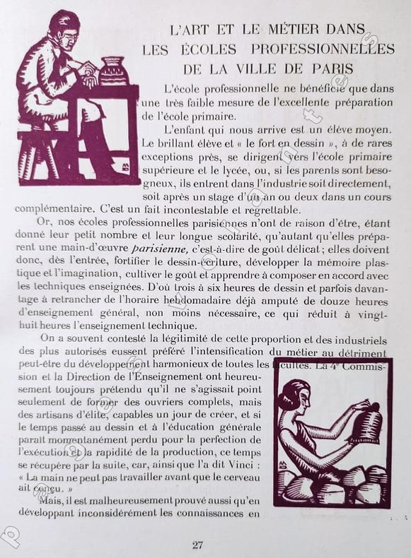 Entièrement composé par les élèves de l'Ecole Estienne avec les bois inédits de Maurice Denonain et Henry-Munsch.Catalogue illustré de nombreuses photos des travaux et stands des Ecoles Boulle, Estienne, Dorian, Emile Dubois, etc... présentés au Pavillon de la Ville de Paris