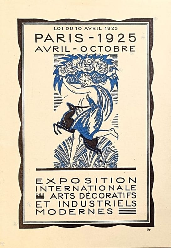paris impr. Crété 1925 Une AFFICHETTE Originale en couleurs , Format : 61 centimètres de haut par 40 centimètres de large, sur papier crème, LITHOGRAPHIE ORIGINALE PUBLICITAIRE : Ministère du commerce et de l'industrie. Exposition internationale des arts décoratifs et industriels modernes PARIS AVRIL-OCTOBRE 1925 : [affiche] / [Antoine Bourdelle] ,1925 [impr. Crété] ([Paris])