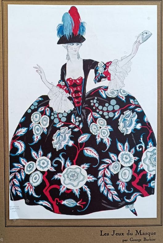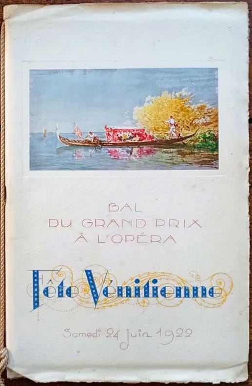 Luxueux programme, imprimé sur vergé et papier chiffon de couleurs, de la fête parée et masquée avec de Max et Ida Rubinstein.Textes de Maurice Barrès, René Boylesve, Henri de Régnier et illustrations hors-texte en couleurs de George Barbier, Al. Bratesco-Voinesti, Jeanne Lanvin, Maxime Dethomas, J.-G. Domergue, Jean Droit, François Flameng, Mme la Baronne Fouquier, F. Martin-Kavel, H. Rapin et St Germier.