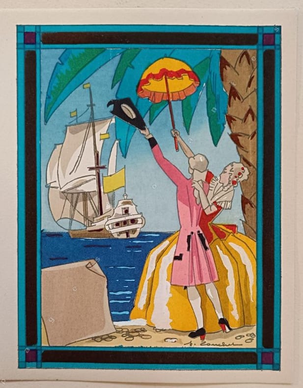 Pochoir signé Jacques Touchet.