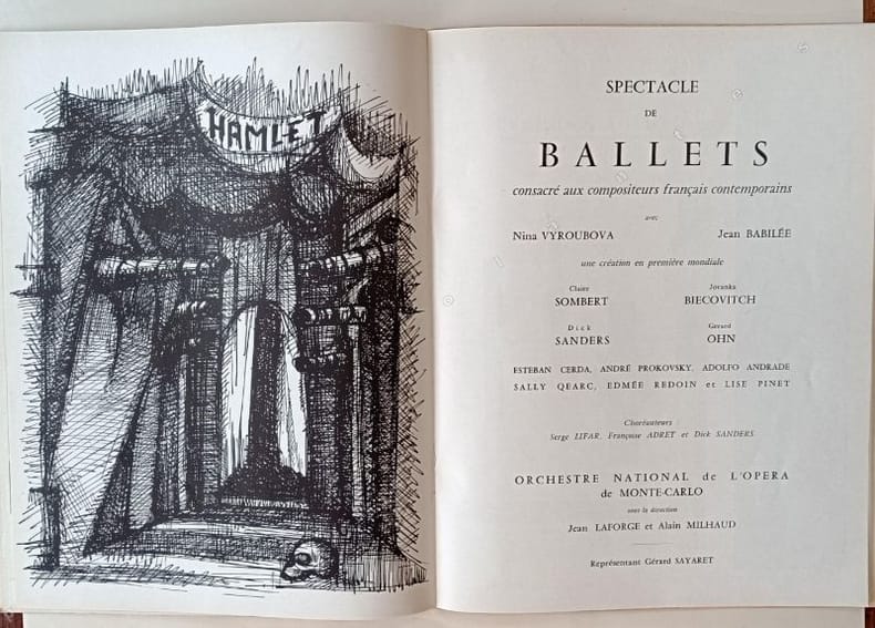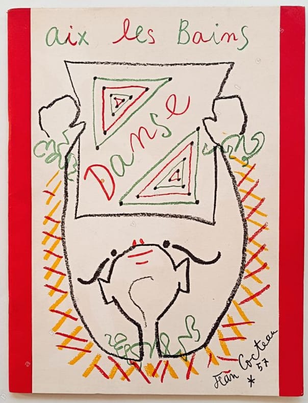 Couverture de Jean Cocteau et C. Maurel.Cet album programme est illustré d'oeuvres inédites de Jean Cocteau pour la couverture et pour son texte, du photographe Serge Lido pour la présentation d'Aix-Les-Bains, des peintres Capuletti pour Lusillo, B. Sandberg pour Babilée, d'après le décor de Wakhevitch, Touchagues pour l'Opéra et l'Opéra-Comique ...