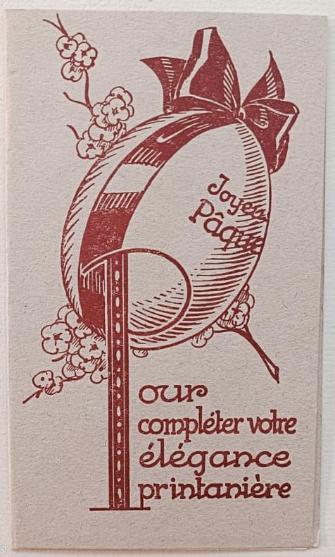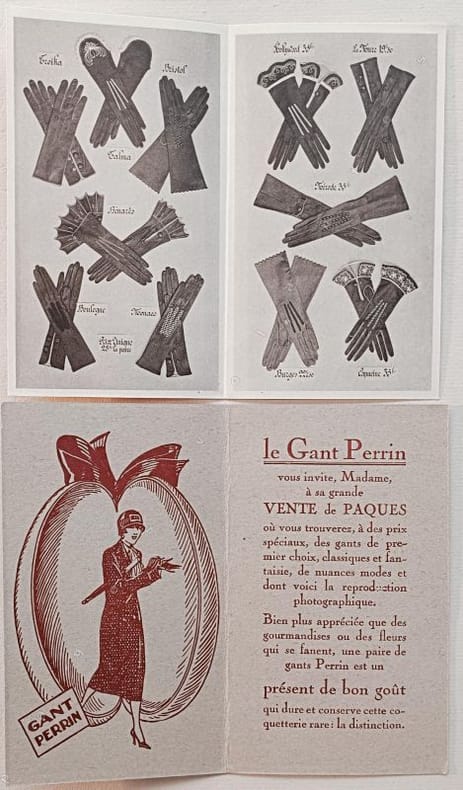 Carton d'invitation bien complet du double feuillet illustré des modèles des gants présentés.