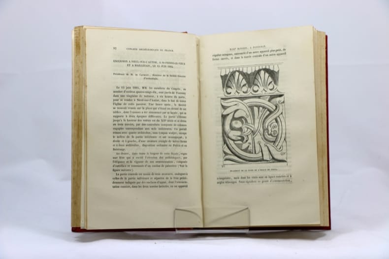 P., Derache et Caen, Chez F. Le Blanc-Hardel, 1865. In-8 rel. demi-percaline rouge postérieure, dos lisse à 4 faux-nerfs formés de filets à froid, titre doré, tranches mouchetées, LXVIII-484 pp., nbr. plans, fig. et ill. photogr. en noir in et hors-texte, qq.-unes dépliantes.