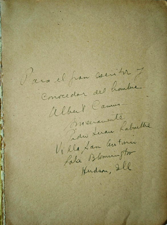 Envoi a.s. en espagnol à Albert CAMUS, daté de Hudson en Illinois.Natif de Puerto Rico, Pedro Juan Labarthe (1907-1966) vécut une grande partie de sa vie aux Etats-Unis où Camus effectua un séjour de quelques mois en 1946. Bords de la couverture frottés, bon ex., non coupé. - Frais de port : -France 4,95 € -U.E. 9 € -Monde (z B : 15 €) (z C : 25 €)