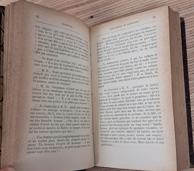 Collection : Bibliothèque choisie des chefs-d'oeuvre français et étrangers - XVI - Au sommaire : 1ère partie : Chamfort : Les hommes et les choses au XVIIIe siècle. Maximes et pensées. Petits dialogues philosophiques. 2ème Partie : Rivarol : Maximes, pensées et paradoxes. Esprit de Rivarol. Conversation de Rivarol. Petit almanach des grands hommes. Qq. rousseurs éparses, joli ex. relié. - Frais de port : -France 4,95 € -U.E. 9 € -Monde (z B : 15 €) (z C : 25 €)