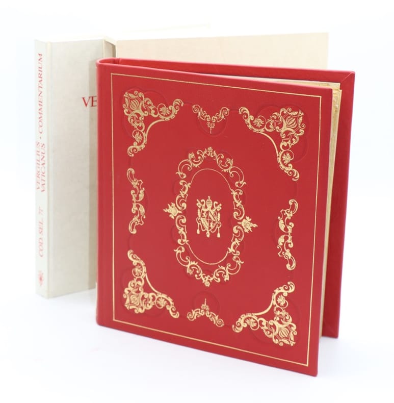 Akademische Druck-u. Verlagsanstalt (ADEVA), Graz, 1980. Un volume en fac-similé, petit in-4 carré (21x23,5 cm), sous étui cartonné. Reliure de l'éditeur plein-cuir rouge à décor doré, 76 ff. rognés conformément aux originaux + un volume de commentaires en anglais (par David H. Wright), de même format, cartonné, 107 pp., illustré de plusieurs planches en noir & blanc.