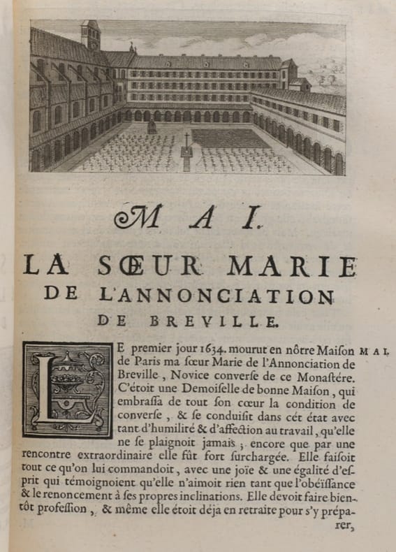 Ill. de 12 grandes vignettes, lettres ornées et culs-de lampe. Cet ouvrage a été composé par les religieuses de Port-Royal, et principalement par la mère Angélique de Saint-Jean Arnauld. Il fut recueilli et publié par Dom Rivet. 1ère et seule éd. Edition originale.