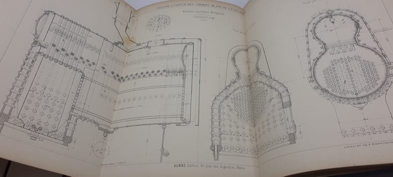Paris, Vve Ch. Dunod, 1886. 2 vol. in-4, rel. de l'ép. demi-chagrin vert, dos à faux nerfs, titre doré, estampille dorée sur le 1er plat ; XXXVI-744 pp., 1092 fig. in-t., index + Album de 38 planches, la plupart dépl.