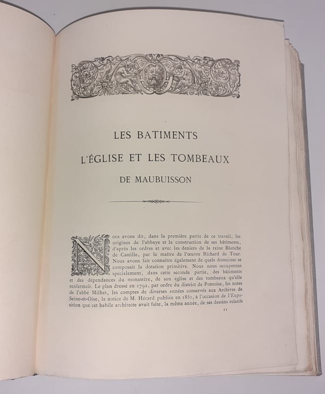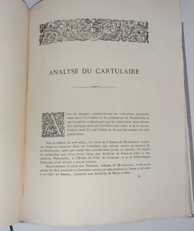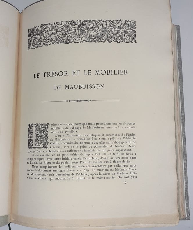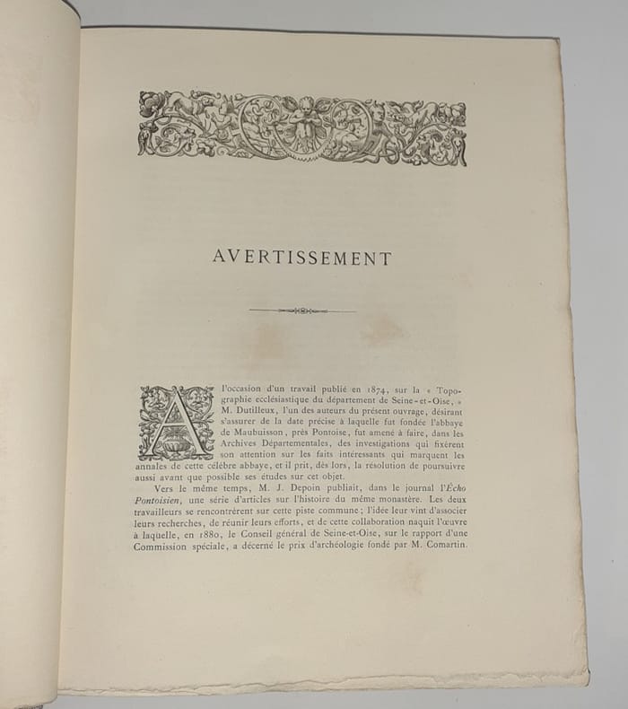 Pontoise, Typographie de Amédée Paris, 1882-1885. 4 parties reliées en 1 vol. in-4, rel. moderne pleine-toile grise, pièce de titre brune, titre doré, couv. cons. ; IV-318 pp. en continu, bandeaux, lettrines et culs-de-lampe, tables, catalogues des Abbesses, liste des religieuses, appendices, annexes, bibliographie. Belle édition sur papier vélin.