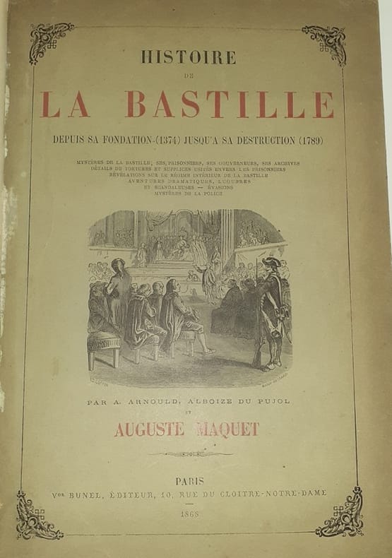 Contient : Vol. I-VI : La Bastille, ses prisonniers, ses gouverneurs, ses archives, détails des tortures et supplices, régime intérieur, évasions, archives de la police. Vol. VIII-VIII : Vincennes, maison royale, forteresse, prison d’état, histoire des principaux prisonniers, le donjon, les oubliettes, la chambre des tortures. Bon état d’occasion