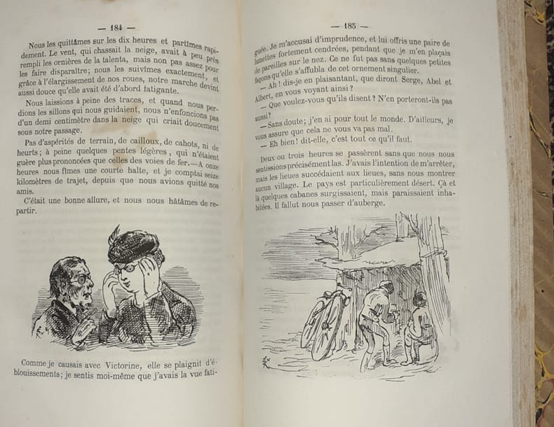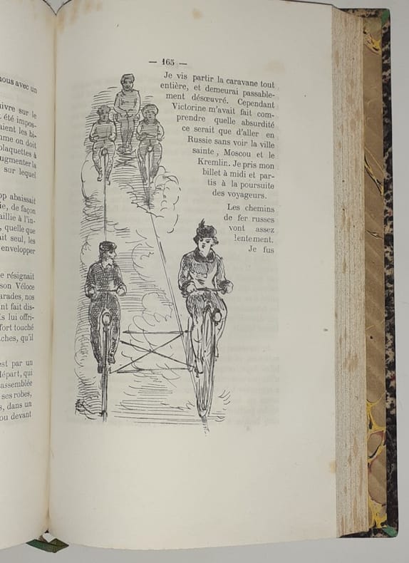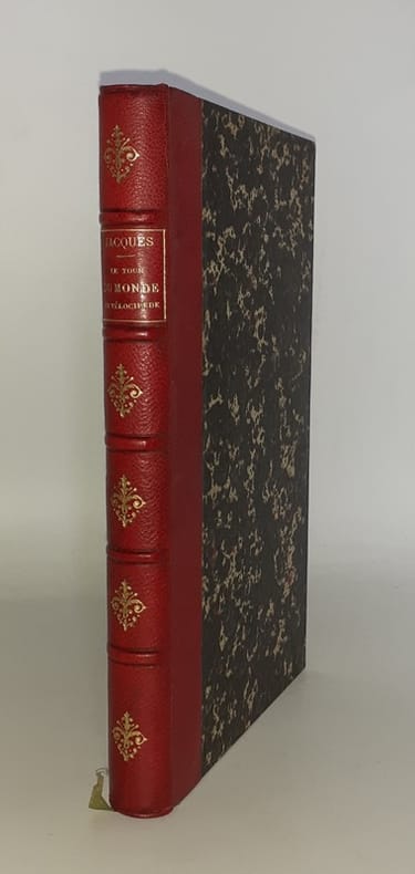 Richard Lesclide (1825-1893) dit le Grand Jacques. Epopée d'un groupe de cyclistes qui partent à la conquête du monde à bord de leurs vélocipèdes, récit ponctué d'aventures rocambolesques, de rencontres et de description des paysages traversés... Qq. pâles rousseurs, bel ex. bien relié. - Frais de port : -France 6,9 € -U.E. 9 € -Monde (z B : 15 €) (z C : 25 €)