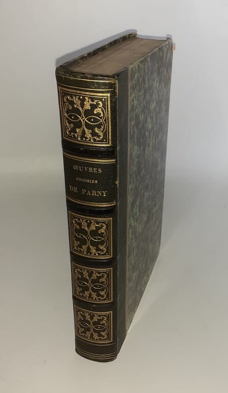 Paris, Lefèvre, 1827. In-8, rel. de l'ép. demi-chagrin vert bordé d'1 filet doré, dos à nerfs, caissons dorés ornés de décors aux fers dorés, titre doré, tête dorée ; XIV-521 pp., portrait gravé par Tardieu d’après Isabey au front., notice sur Parny, ex. à grandes marges.