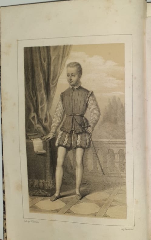 Paris, Au comptoire des Imprimeurs Unis, 1845. In-8, rel. de l'ép. demi-basane brune, dos lisse, filets et roulettes dorés, titre et monogramme (en queue) dorés, tr. mouchetées; XII-533 pp., portrait en pied d'Henri IV enfant au front., fragment de sa traduction des commentaires de césar (p. 331), et un fac-similé de sa première lettre (p.434), notes et notices, bandeaux , lettrines et culs-de-lampe.