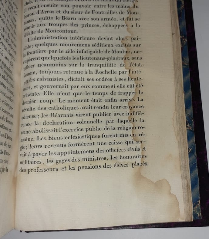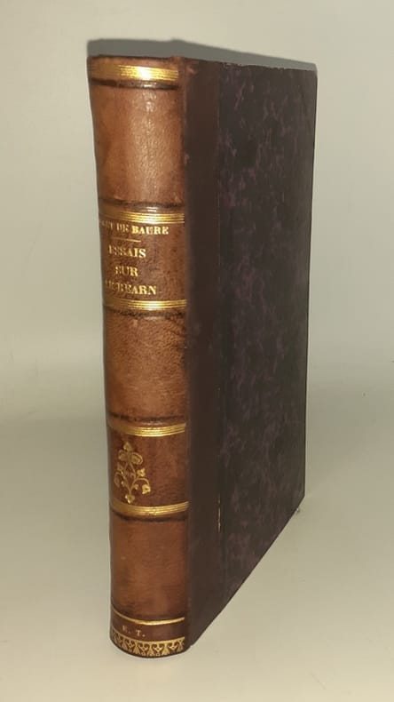 A PARIS. DENUGON, IMPRIMEUR-LIBRAIRE. ALEXIS EYMERY, LIBRAIRE. 1818. IN-8 (13 X 20 X 3,5 CENTIMETRES ENVIRON) DE (2) + 499 PAGES, RELIURE D’EPOQUE 1/2 VEAU HAVANE, DOS LISSE ORNE D’UN JOLI DECOR DE FLEURONS A FROID ET DORES, TITRE DORE. EDITION ORIGINALE. « CETTE HISTOIRE DU BEARN S’ARRETTE A L’ACCESSION D’HENRY IV AU TRONE DE FRANCE » (DENDALETCHE. 718). SANS LE FEUILLET DE FAUX-TITRE, PETITES TRACES D'USURE EXTERIEURE SANS GRAVITE, SINON BEL EXEMPLAIRE, DANS UNE AGREABLE RELIURE D’EPOQUE.