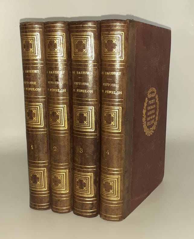 130. edition Versailles, J.A. Lebel, 1817, 4 volumes, in-8. En frontispice portrait de Fénélon dessiné par Defenne et gravé par Leroux. Troisième édition revue corrigée et augmentée. T1: 420 pages. T2: 407 pages. T3: 548 pages et T4: 563 pages, plein veau glacé de l'époque, dos à nerfs ornés de filets dorés, caissons décorés de filets et fleurons dorés, plats bordés de filets dorés et d'une dentelle à froid, pieces chiffres sur le dos (T2 et T4 manquant), coins et plats legerements frottes. Complet en 4 volumes phots possibles