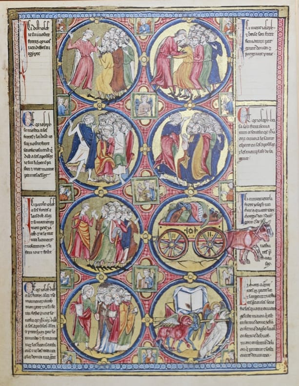 La Bible moralisée de Vienne (Codex Vindobonensis 2554) est un manuscrit enluminé exceptionnel, réalisé en France au début du XIIIe siècle (vers 1215–1230). Elle est entièrement rédigée en français ancien. Commandée pour un membre de la famille royale de France (peut-être Blanche de Castille ou Louis IX), elle illustre l’apogée de l’enluminure gothique et de la pensée religieuse médiévale. Ce manuscrit se distingue par sa structure visuelle unique : chaque page présente 8 médaillons associant une scène biblique (Ancien ou Nouveau Testament) à une interprétation morale ou allégorique, créant un dialogue entre texte et image. Très bel exemplaire. - Frais de port : -France 10,8 € -U.E. 13 € -Monde (z B : 23 €) (z C : 43 €)
