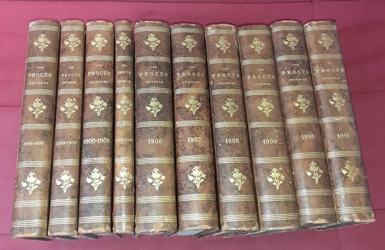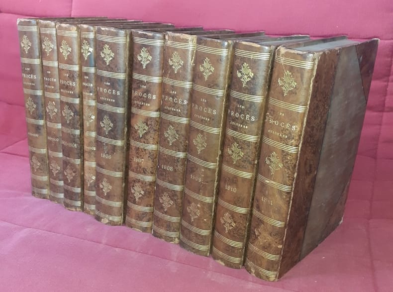 Plusieurs coiffes, mors et coins frottés, rousseurs éparses, papiers jaunis essentiellement sur les tomes des Grands Procès contemporains, très bel ensemble. - Frais de port : -France 16 € -U.E. 19 € -Monde (z B : 55 €) (z C : 110 €)