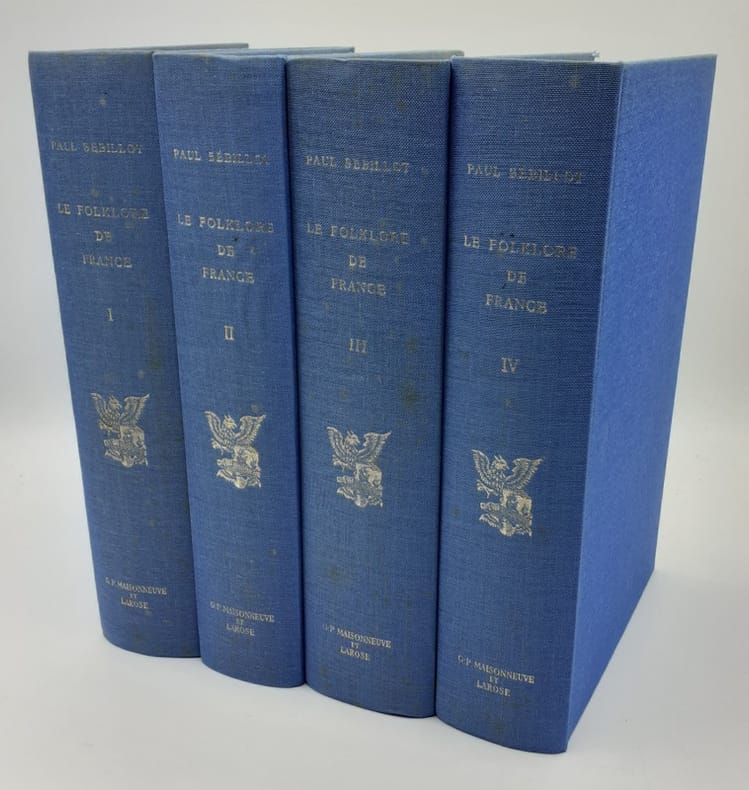 4 vol. in-8 reliure de l'époque demi-percaline à coins verte, Librairie Orientale & Américaine, E. Guilmoto, Paris, 1904, 1905, 1906, 1907, VI489 ; 478 ; II-541 ; 499 pp. Le Folk-lore de France (4 Tomes - Complet) I : Le Ciel et la Terre ; II : La mer et les eaux douces ; III : La faune et la flore ; IV : Le peuple et l'histoire, avec une table alphabétique et analytique
