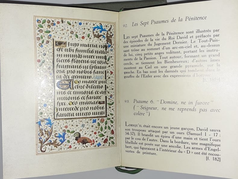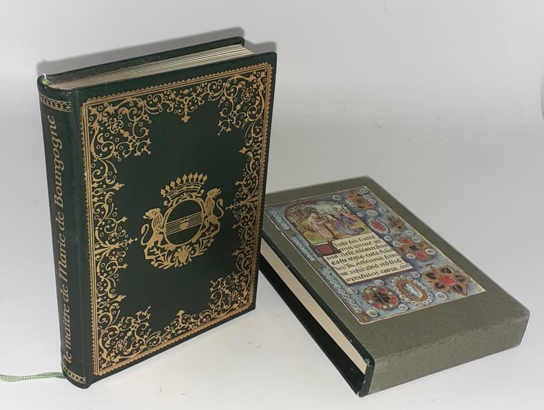 Paris, Draeger éd., 1970. Petit in-12, rel. éd. pleine-basane verte, dos lisse, roulette dorée en tête et en queue, titre doré en long, décor doré à la plaque sur le 1er plat, tête dorée, étui rigide bordé de cuir vert, miniature en coul. contrecollée sur le 1er plat; non paginé, reprod. en polychrome des miniatures avec commentaires en regard.