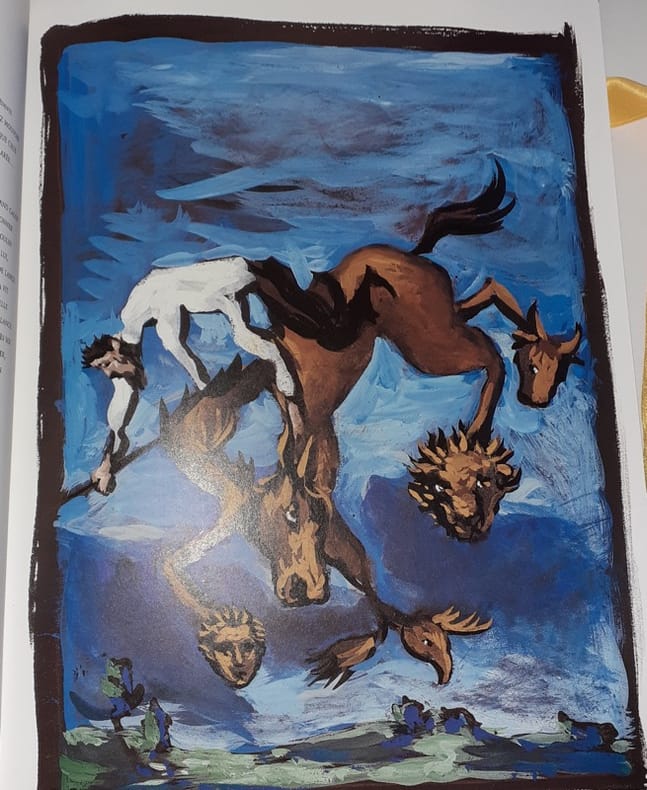 "Le résultat de la rencontre entre Gérard Garouste et l'un des plus grands textes de l'humanité est une véritable oeuvre d'art. « Même si c'est une folie, la raison veut qu'on l'achète. Il fait partie, au même titre que La Divine Comédie de Dante illustrée par Botticelli, de ces oeuvres éternelles », affirme Diane de Selliers." Petit choc à l'étui, bon ex. par ailleurs. - Frais de port : -France 12,8 € -U.E. 15 € -Monde (z B : 36 €) (z C : 76 €)