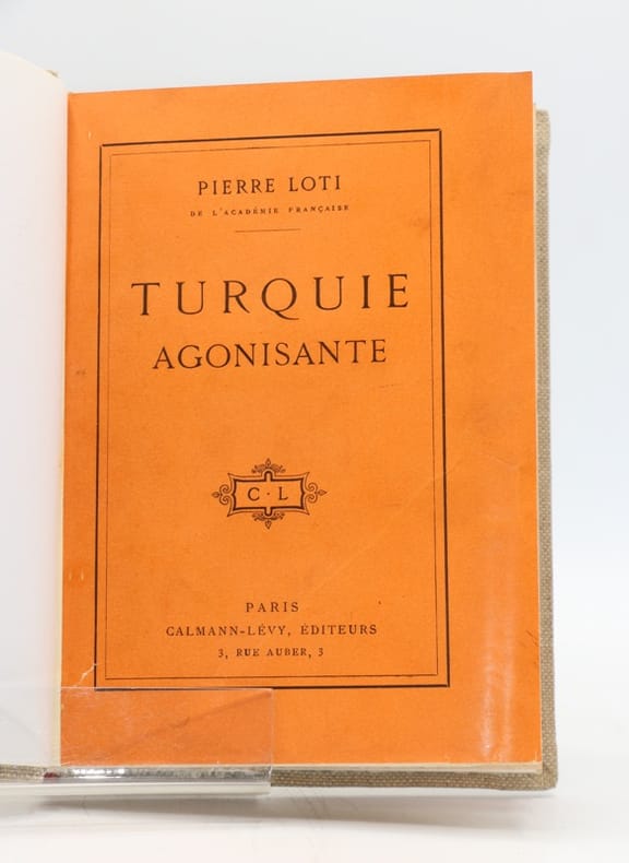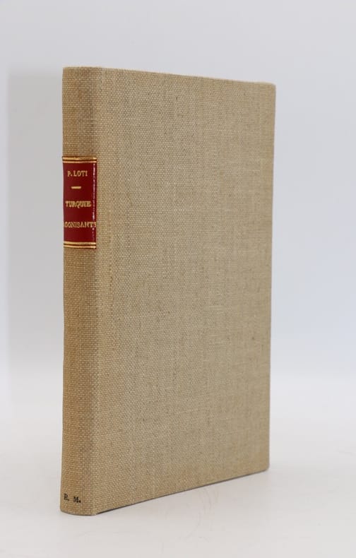 Edition en grande partie originale ; publiée à la même date que la première. Exemplaire sous agréable reliure du temps. ''Du 20 novembre 1912 au 15 mars 1913, Loti publie au sein du Gil Blas ses «Lettres sur les Balkans» qui, augmentées de nombreux témoignages et documents, fourniront la matière des éditions successives de sa Turquie agonisante''. Talvart & Place XII - 272 - Carteret II, Le Trésor du bibliophile romantique et moderne, p. 88 - Thième, Guide bibliographique de la littérature française, p. 254. Angles et coupes élimés. Dos légèrement passé. Plats de la couverture papier originelle à l'état d'usage. Du reste, belle condition.
