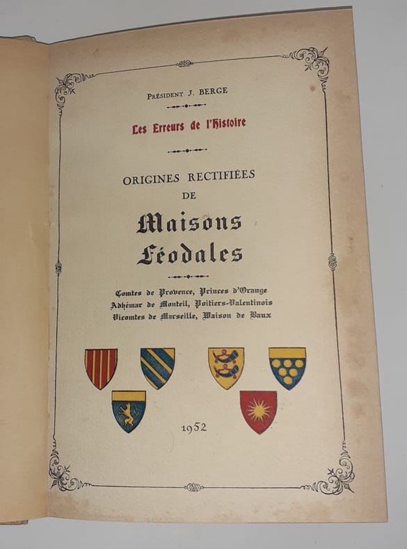 Edition peu commune (très certainement à compte d'auteur) de cet ouvrage traitant des familles nobles de Provence : comtes de Provence, princes d'Orange, Adhémar de Monteil, Poitiers-Valentinois, Vicomtes de Marseille, maison de Baux. (Saffroy, III-48087). Très bel ex. - Frais de port : -France 6,9 € -U.E. 11 € -Monde (z B : 18 €) (z C : 31 €)
