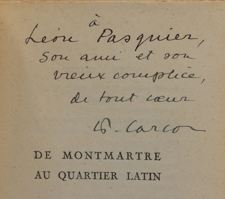 Edition originale, un des 40 exemplaires numérotés sur Lafuma Madagascar, enrichi d'un bel envoi autographe de Carco à Léon Pasquier. Dos un peu bruni, bel exemplaire. - Frais de port : -France 4,95 € -U.E. 9 € -Monde (z B : 15 €) (z C : 25 €)
