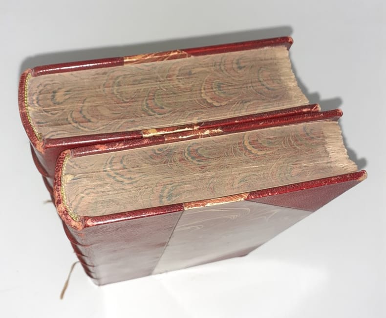 Lyon, N. Scheuring, 1869-1870. 2 vol. petit in-8, rel. de l'époque demi-chagrin rouge à coins, dos à nerfs, titre, tomaison et date dorés, tête marbrée ; XVI-VI-551 et 445 pp., portrait au front., filet rouge encadrant le texte, bandeaux, lettrines, culs-de-lampe, tables. Edition tirée à 150 ex. (n° 9) sur papier teinté.