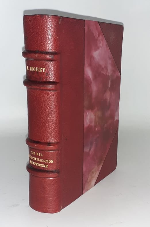 Paris, Albin Michel, 1937. In-8, rel. de l'ép. demi-maroquin rouge à coins bordés d'un filet noir, dos à nerf, titre doré, tête dorée; XVII-573 pp., 24 planches d'ill. photogr. en n/b., 82 fig., 3 cartes et 9 tableaux de dynasties en n/b. in-t., bibliographie, index.