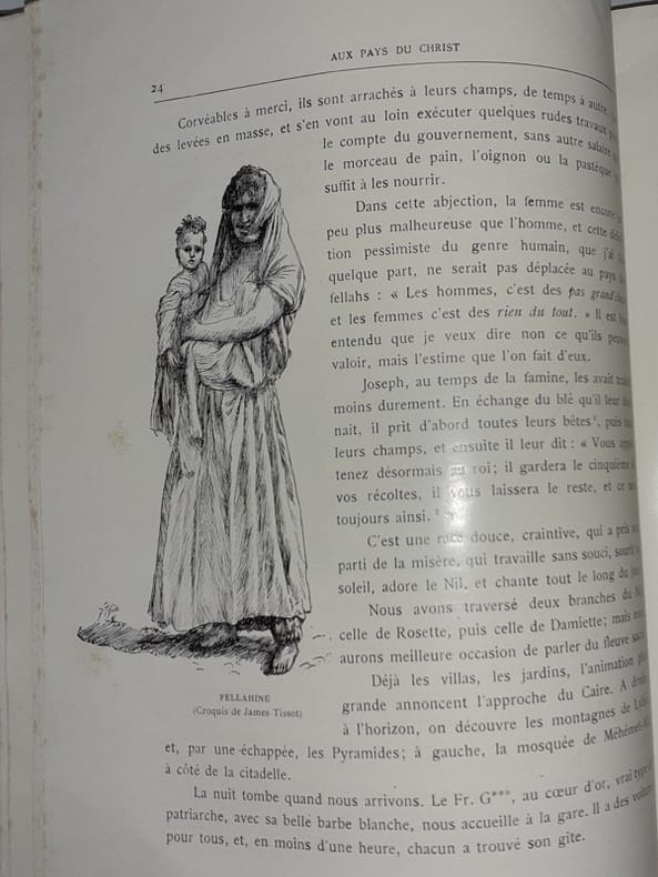 septième édition entièrement refondue in 4 broché, couverture illustrée en couleurs, faux-titre, titre, grande carte dépliante de la Palestine, XV, 658 pages sur papier couché, Nombreuses illustrations dans le texte et à pleine page, un plan de Jérusalem, dépliant par l’abbé Henri NICOLE. Maison de la Bonne Presse, sans date. Petite déchirure réparée, au premier plat de couverture, sinon très bon état