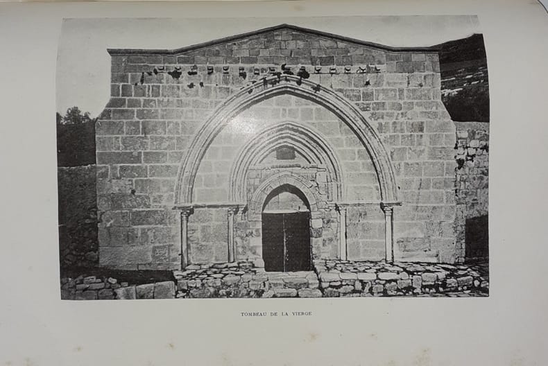 Paris, Bonne Presse, 1923, sixième édition, 20x28 cm, reliure demi-basane rouge foncé à coins, dos à nerfs, couverture illustrée conservée (petit manque), 585 pages, une carte dépliante en couleurs : La Palestine, intinéraire des pèlerinages par l'Abbé H. Nicole, Un plan de Jérusalem dépliant en couleurs par l'Abbé H. Nicole, nombreuses illustrations en noir et blanc.