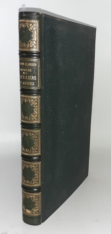 Tours, Alfred Mame et fils éd. , 1864. Grand in-8, rel. éd. demi-chagrin vert, dos à nerfs, caissons dorés fleuris aux petits fers dorés, titre doré, plaque à froid sur les plats, tranches dorées, VIII-328 pp., frontispice, 3 gravures h.-t., 15 fig. gravées sur bois in-t., liste chronologique des grands maîtres de l'Ordre de Saint-Jean de Jérusalem, table. Première édition.