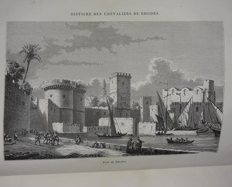 Alfred Mame Et Fils, Editeurs Tours 1867 In-8 ( 265 X 170 mm ) de 336 pages, demi chagrin noisette, dos à nerfs orné de fleurons dorés, tranches mouchetées ( Reliure de l'époque ). Illustrations dans et hors-texte. Rousseurs passim, anciens cachets de bibliothèques sur la page de titre, bel exemplaire.Origine de l'ordre, partage des Hospitaliers, creation des commanderies, les templiers, combat des Hospitaliers contre les templiers, fondation de l'Ordre Teutonique, croisade de Saint-Louis, l'Ordre de l'Hopital en Chypre, Helion de Villeneuve - Grand-Maitre, Prise d'Alexandrie, le schisme dans l'Ordre de Saint-Jean, creation de la langue de Castille et du Portugal, Pierre d'Aubusson - Grand-Maitre, liste chronologique des Grands Maitres de l'ordre de Saint-Jean de de Jerusalem .