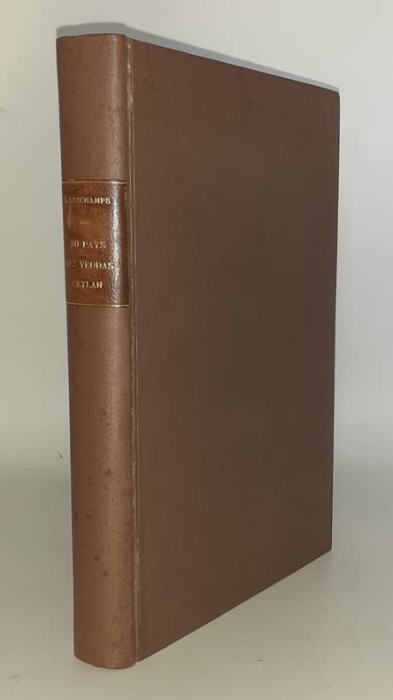 1892 Paris: Société d'éditions scientifiques, 1892. Edition originale, in-8;broché, [vi], iii, [i], 492p., [2p. Errata]; carte dépliante in fine, et 116 figures d'après les croquis et photographies de l'auteur, certaines à pleine page, bon exemplaire. Emile Deschamps arriva à Colombo le 18 Juin 1889 en provenance de Singapour, et quitta cette ville en mai 1890,après une année de "promenades", racontées ici jour après jour avec les impressions du moment. Charmant ouvrage abondamment illustré: pirogues, paysages et habitants Cinghalais, cultures et végétation, fourmis jaunes, etc.