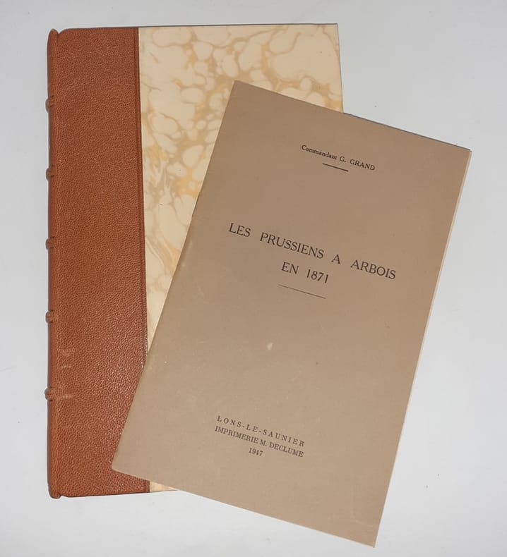 Besançon, Imprimerie de l'Est, 1959. In-8, rel. moderne demi-chagrin havane, dos à nerfs, titre doré, tête mouchetée, couv. cons.; VIII-323 pp., blason de la ville au titre, 11 ill. ( reprod. photogr., gravures, cartes, plans, sceaux en n/b. la plupart h.-t.), index. Nous joignons un fasc. du même auteur sur : Les Prussiens à Arbois en 1871, 25 pp., tiré à part des Mémoires de la Société d'Emulation du Jura, paru à Lons-Le Saunier chez M. Declume, 1947.