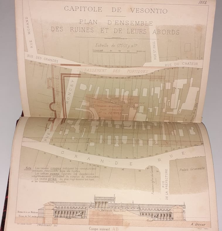 Paris, Imprimerie Impériale, 1869-1883. In-8, rel. post. demi-chagrin rouge foncé, dos à nerfs, titre et dates dorés, couv. cons.; 31 pp., 3 pl. dont 1 à double pp. par Alfred Ducat et pp. 172 à 404, 2 planches à double pp. en coul. par Alfred Ducat. Edition originale.