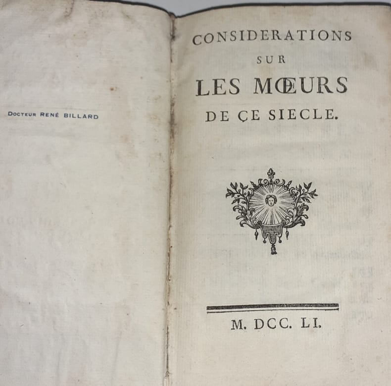 Considérations sur les moeurs de ce siècle par M. Duclos (1704-1772) Paris, Prault et Durand, 1767 5ème édition