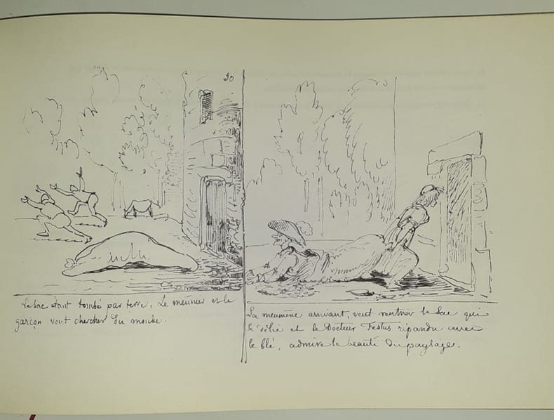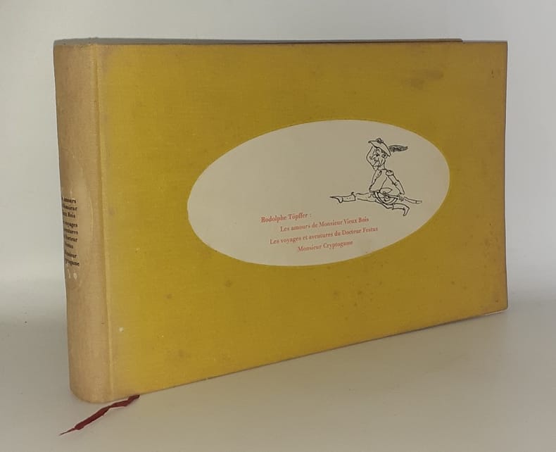 Paris, Club des Libraires de France, 1962. In-8 à l'italienne, rel. éd. pleine-toile jaune, titre au dos, médaillon ill. et titré en rouge contrecollée au centre du 1er plat, 26 pp. de biographie sur l'artiste par Manuela Maschietto, autoportrait de Töpffer au front., les trois histoires en images ne sont pas paginées, ill. reproduites pour la première fois d'après les manuscrits originaux de 1827,1829 et 1830, les textes manuscrits de l'auteur sont retranscrits en regard pour une meilleure lecture. En exergue, reproduction des précautions autographes pour la meilleure utilisation de l'ouvrage signée le 20 juillet 1830, renouvelé le 1 février 1831.