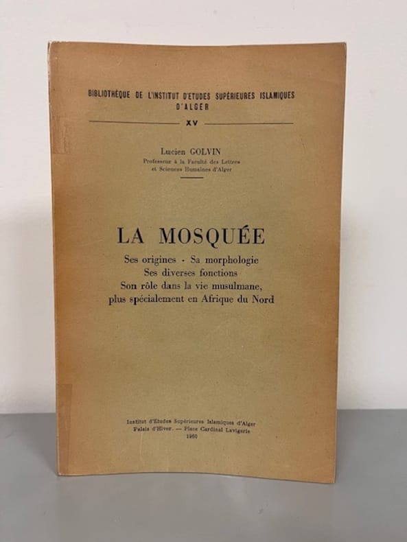 Institut d'Etudes Supérieures Islamiques d'Alger, 1960. In-8 br., 150pp., 18 fig. in-t. et 24 pl. photogr. en noir h.-t., index des termes arabes, index des noms. (Bibliothèque de l'Institut d'Etudes Supérieures Islamiques d'Alger, XV). Envoi autographe de l'auteur à l'érudit A. Berthier. Ex-libris ms. Première édition de cet ouvrage devenu fort rare.