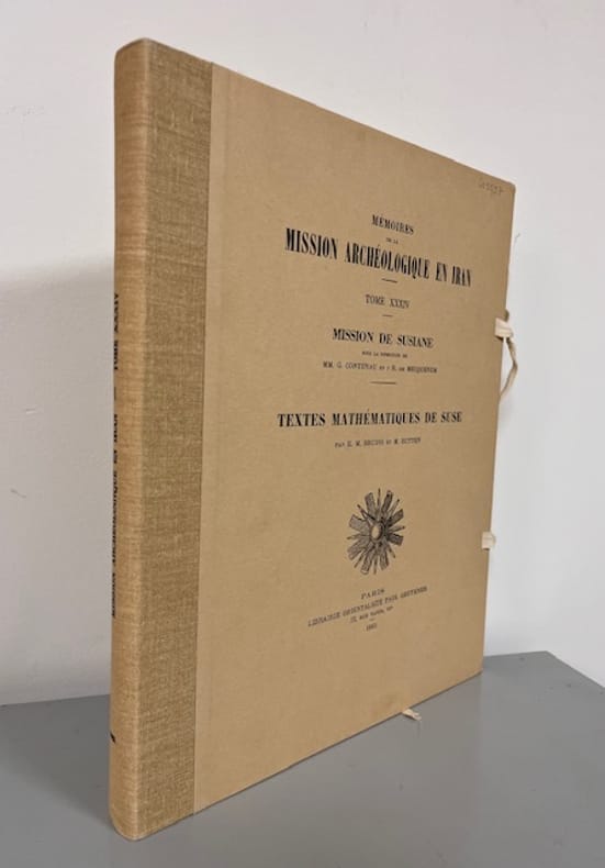 Paris, Librairie Orientaliste Paul Geuthner, 1961. Portfolio d'éditeur beige à lacets, demi-toile beige, contenant 1 volume broché : couverture muette, X-136 pp., XII planches d'illustrations photographiques en noir hors texte + 39 planches d'inscriptions cunéiformes en noir hors texte.