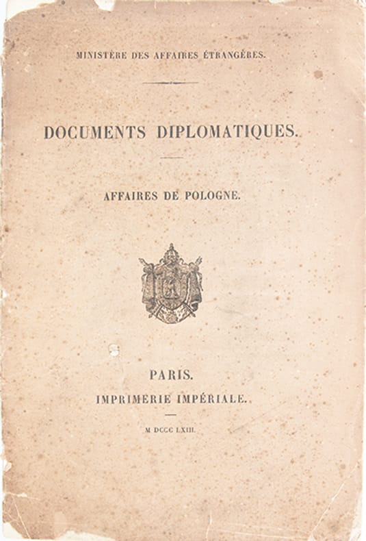 Recueil de documents diplomatiques au sujet des traités concernant le rétablissement de la paix avec la Russie et le sort de la Pologne.Couverture piquée et abîmée. Intérieur très frais.