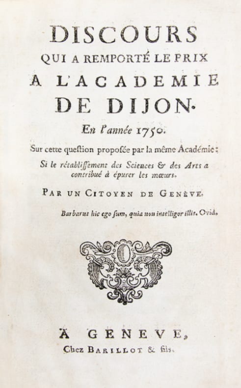 1- Edition originale, exemplaire bien complet du frontispice gravé par Ch. Baquoy : "Satyre, tu ne le connais pas", qui n'a été joint qu'à un nombre réduit d'exemplaires. Louvrage a été imprimé à Paris, sous la fausse adresse de Genève, par les soins de Diderot pour le compte du libraire Pissot."Le livre qui rendit Rousseau célèbre"; son succès foudroyant propulsa le Citoyen de Genève sur lavant-scène de la République des Lettres. En répondant par la négative à la question mise au concours par l'Académie de Dijon, Rousseau prend le contre-pied de ses contemporains pour dénoncer un ordre social fondé sur le luxe et les inégalités, corrompu et bafouant les véritables valeurs. Et de démontrer que les progrès indéniables des sciences et des arts ne se sont pas accompagnés dun progrès moral. La descendance de cet essai sera immense."Une force insoupçonnée et sincèrement rebelle apparaît dans ce Premier Discours, une pensée novatrice qui sonne juste. Et la lumière que Rousseau jette sur l'homme et sur le lien social va contribuer à remettre en cause une certaine idée du progrès" (Jacques Berchtold).(Dufour, n°13. Gagnebin, III, p. 1854-1855).2- Edition originale. (Conlon, Ouvrages relatifs à J.J. Rousseau, n°2).3- Edition originale de la réponse de Rousseau à la brochure de Stanislas Leszczynski (cf. ci-dessus). (Dufour, n°23, p. 24).Mors légèrement frottés.Très bon exemplaire, frais, grand de marges, bien relié.