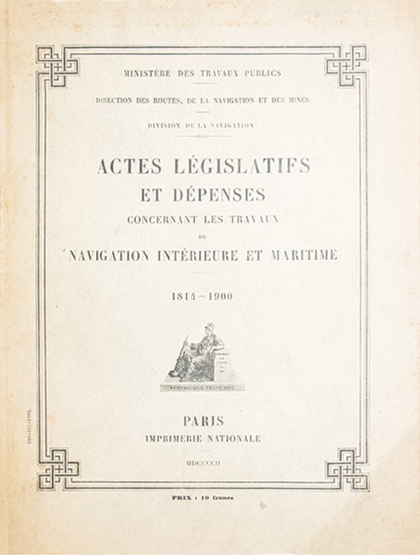 Important recueil officiel rassemblant les textes législatifs et les données budgétaires relatives aux grands travaux de navigation intérieure et maritime effectués en France au XIXe siècle. Ouvrage de référence pour lhistoire des infrastructures et de la politique des transports.Nombreux tableaux statistiques.Bon exemplaire.