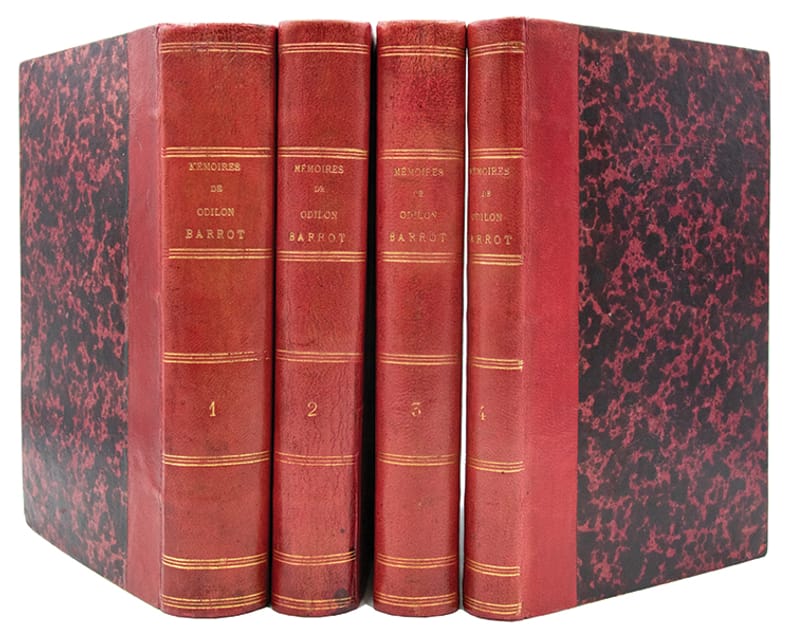 MEMOIRES POSTHUMES DE ODILON BARROT Tomes I, II & III ( sans le tome IV dernier) volumes in-8, 230x145, reliés demi cuir, dos à nerfs, frottements,bon état intérieur, 502, 482 & 612pp Paris Charpentier 1875 ref/c24